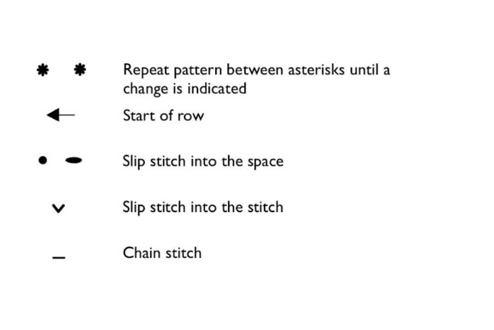 Primarily schematic, the pattern also includes written instructions on how to follow the diagram and adjust for your shape and size. Whenever instructions require specific stitch multiples or row counts, there is a reference table to help you make a choice.
